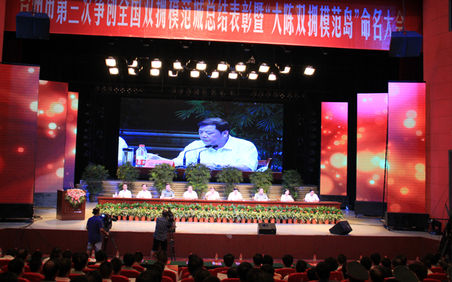 ??我市在市文化藝術中心隆重召開慶祝臺州市第三次爭創(chuàng)全國雙擁模范城總結表彰暨“大陳雙擁模范島”命名大會,總結成績,表彰先進,并動員全市上下珍惜榮譽,再鼓干勁,進一步鞏固和擴大雙擁創(chuàng)建成果,為實現全國雙擁模范城“四連冠”而努力。市領導陳鐵雄,元茂榮,肖培生出席大會。